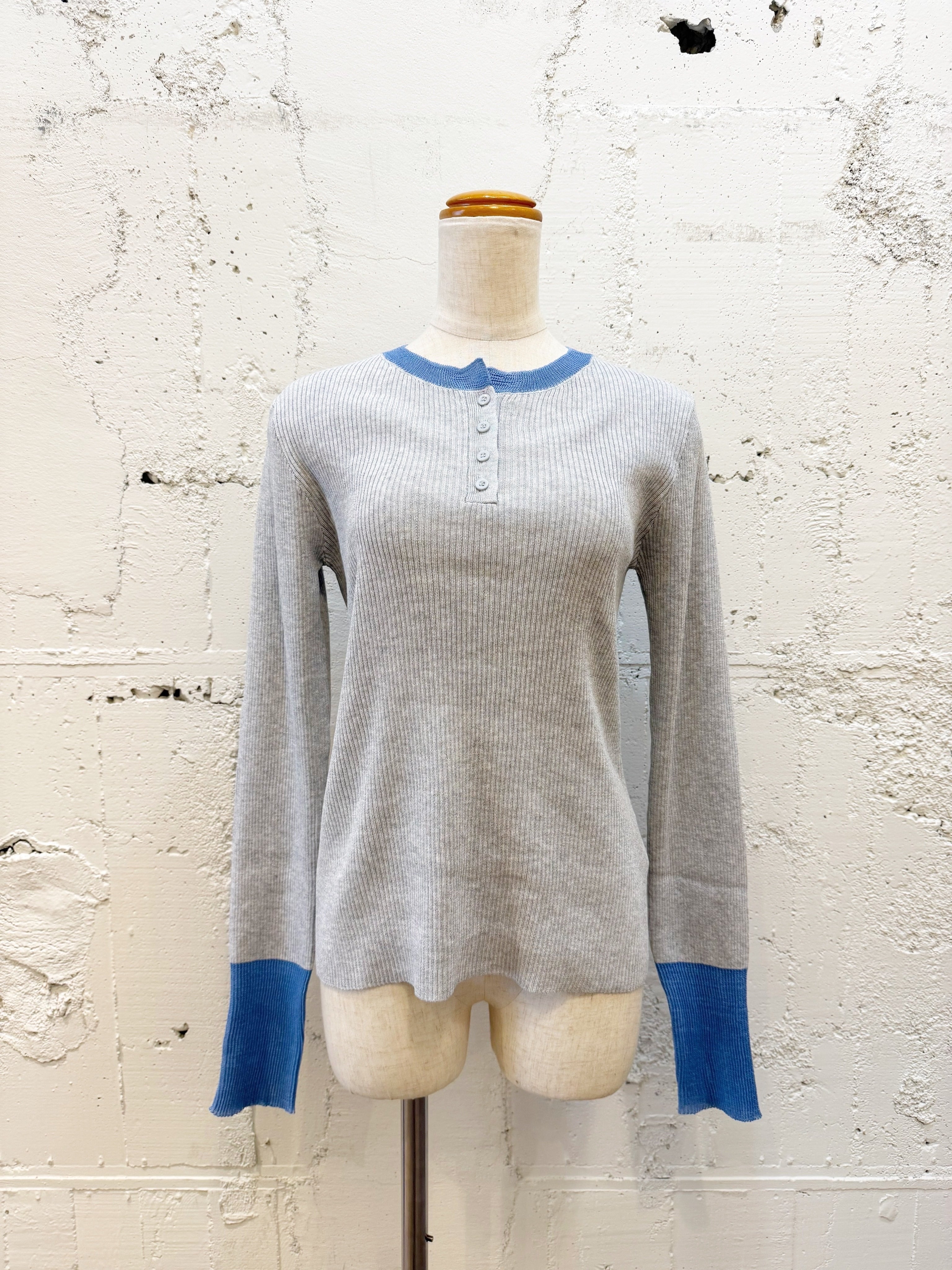 バイカラーデザインのヘンリーネックプルオーバー