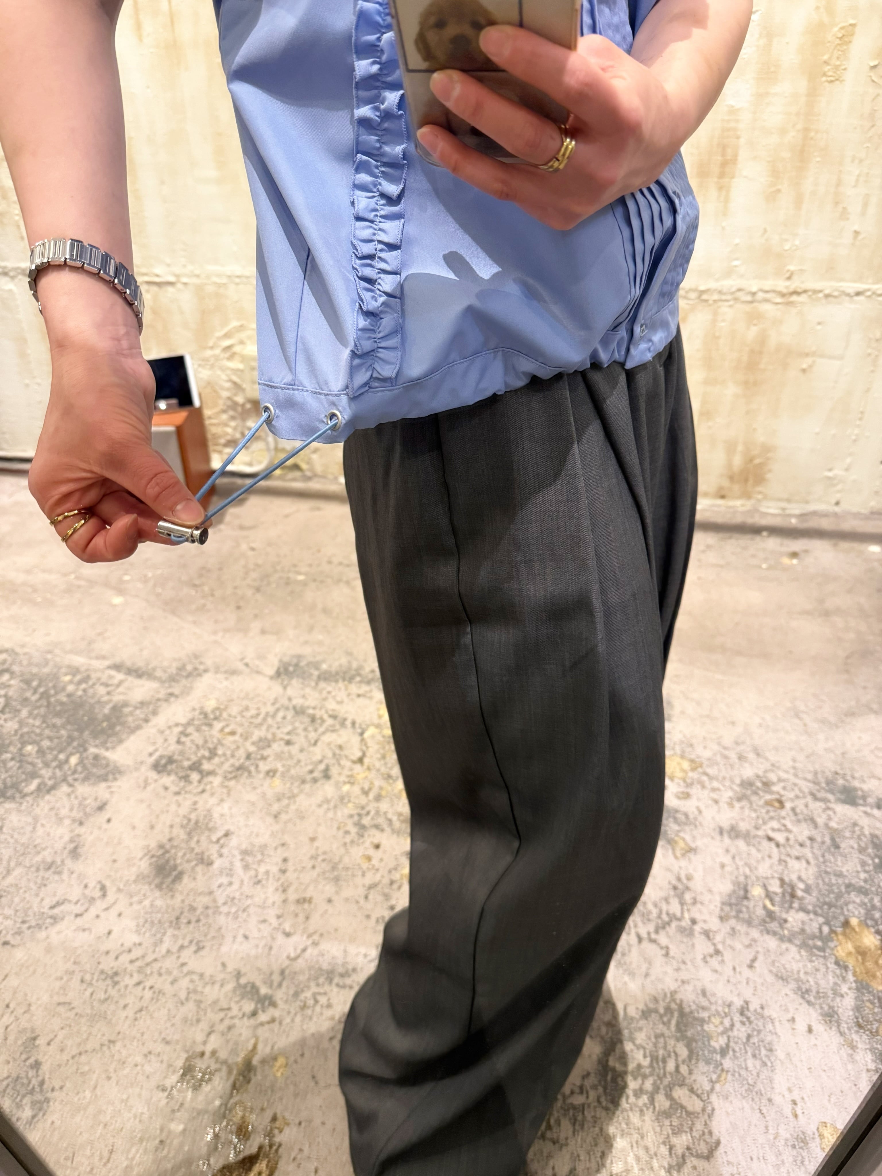 draw cord frill pin tuck blouse